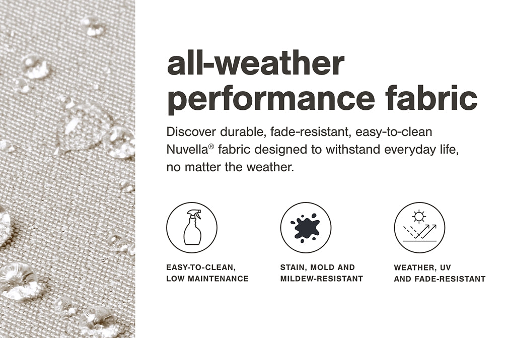 | Details | All-weather resin wicker handwoven over powder coated rust-resistant aluminum frame, Cushion covered in high-performing Nuvella® fabric, All-weather foam cushion core wrapped in soft polyester, Clean fabric with mild soap and water, let air dry; for stubborn stains, use a solution of 4 oz. bleach to 28 oz. water, Imported fabric and fill | |