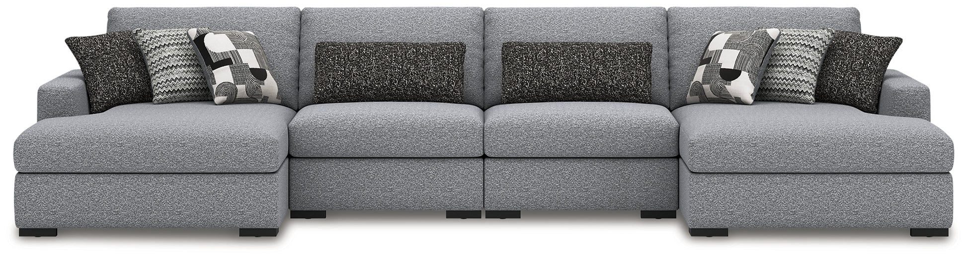 | Details | Includes 4 modular pieces: left-arm facing corner chaise, 2 armless chairs and right-arm facing corner chaise, "Left-arm" and "right-arm" describe the position of the arm when you face the piece, Modular pieces can float anywhere; sides are finished (with no connectors), Corner-blocked frame, Reversible seat and back cushions; high-resiliency foam cushions wrapped in poly fiber, Accent pillows included; pillows with soft polyfill, Polyester upholstery, Next-Gen Nuvella is a performance fabric that is soft, easy to clean, stain-resistant and durable, Easy-to-remove zippered covers for machine washing, Clean fabric with mild soap and water, let air dry; for stubborn stains, use a solution of 4 oz. bleach to 28 oz. water, Low-profile accent legs with faux wood finish, Platform foundation system resists sagging 3x better than spring system after 20,000 testing cycles by providing more even support, Smooth platform foundation maintains tight, wrinkle-free look without dips or sags that can occur over time with sinuous spring foundations | |