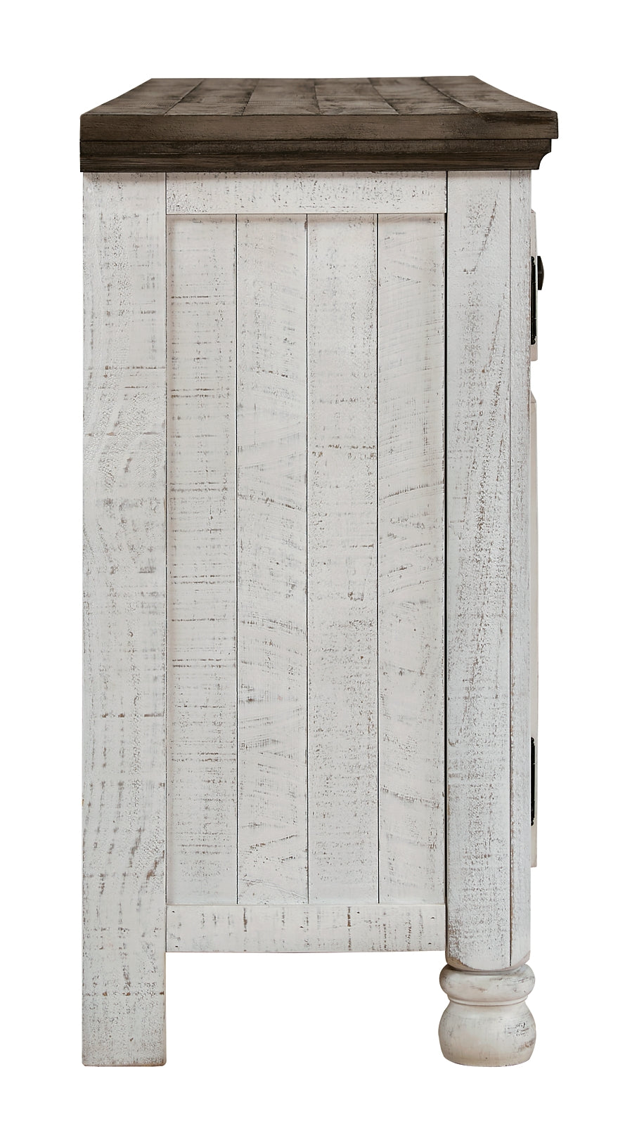 | Details | Made of wood, veneer and engineered wood, Two-tone finish with distressed weathered gray top on vintage white case, 4 doors, 2 adjustable shelves in right and left cabinets, Single adjustable shelf behind center glass front doors, Open center cubby space, Cutouts for cord management, Assembly required | |