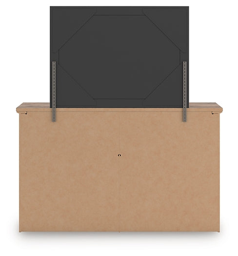Rusticott Poster Bed With Mirrored Dresser And Nightstand
