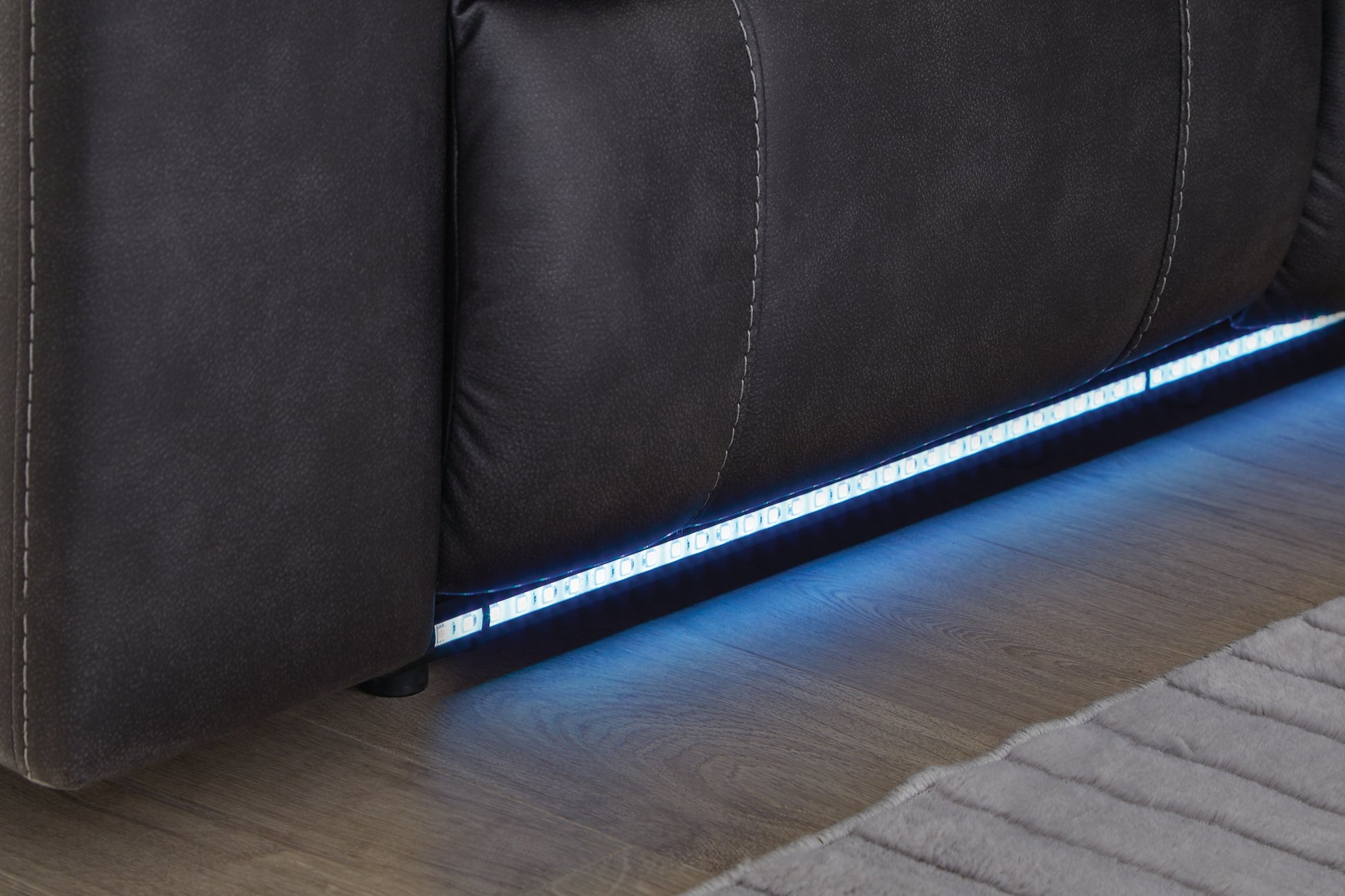 | Details | Includes 2 pieces: left-arm facing reclining loveseat and right-arm facing reclining loveseat, “Left-arm” and “right-arm” describe the position of the arm when you face the piece, Pull tab reclining motion, Corner-blocked frame with metal reinforced seat, Attached cushions, High-quality foam cushions wrapped in poly fiber, Faux leather upholstery, Console with 2 cup holders and hidden storage, Ambient red, white and blue LED lighting; touch button control in arm, Power cord included; UL Listed | |