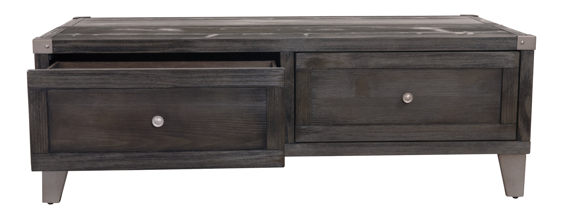 | Details | Made of veneers, wood and engineered wood, Weathered pine finish, Metal legs, bracket accents and hardware, Spring-lift top, 2 smooth-gliding drawers, each with a removable tray, Minor assembly required | |