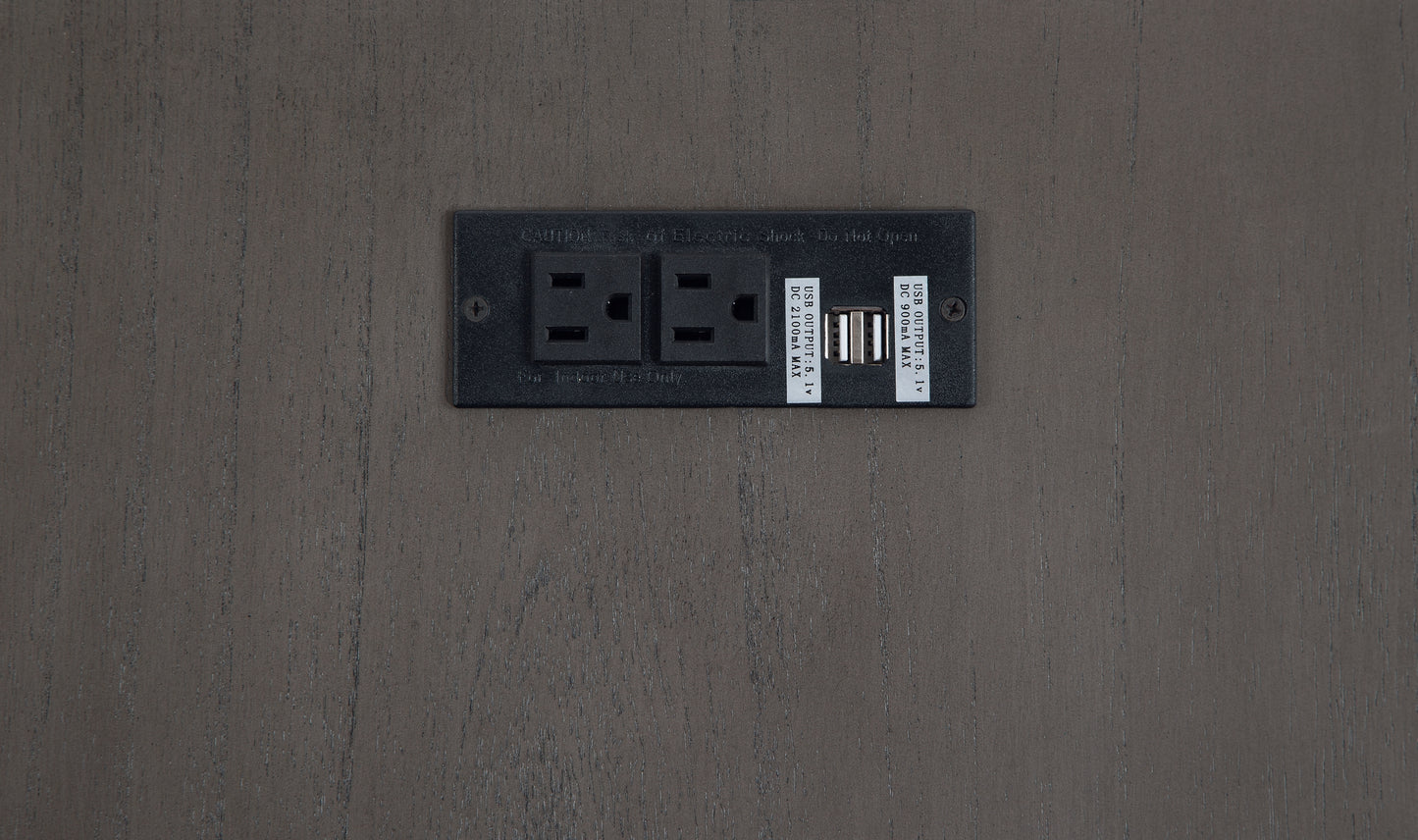 | Details | Made with solid wood, wood veneer and MDF substrate, Gray wood tone finish, Table features storage cabinet, open cubby shelf and pull-out tray, 110V power supply with dual USB charging ports, Power cord included; UL Listed, Due to the use of natural materials, some variations may occur, Assembly required | |